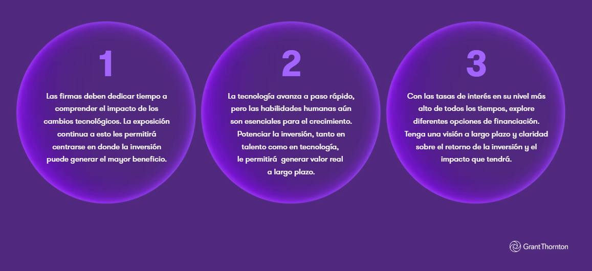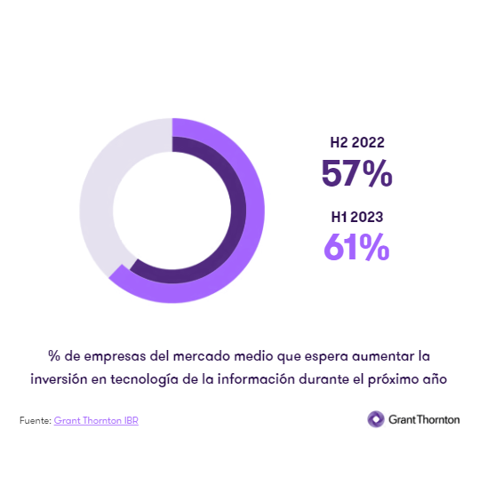 “Tradicionalmente, la inversión en tecnología estaba liderada por empresas más grandes, con bolsillos más profundos, y las ganancias de productividad se producían más adelante. Pero ahora, la tecnología es accesible para empresas de todos los tamaños y esto se ha visto impulsado en gran medida por el aumento del uso de la nube. Para las empresas del mercado medio en particular, existen enormes oportunidades disponibles” - Nick Watson, Socio, Director Global de Tecnología, Grant Thornton UK.