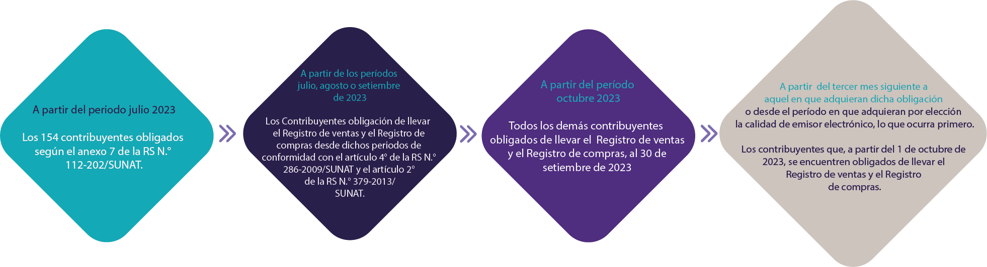 Los sujetos obligados a partir del periodo octubre de 2023, deberán cerrar el Registro de Ventas y el Registro de Compras mediante la presentación de los registros del periodo setiembre 2023.