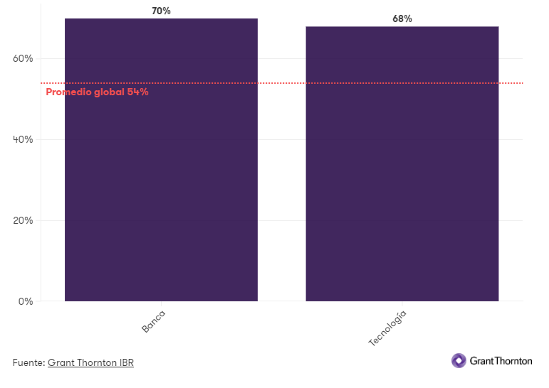 Dos sectores que están poniendo un gran foco en la inversión en marca son banca y tecnología. Según nuestros datos del IBR, el 70% de las empresas bancarias y el 68% de las de tecnología buscarán invertir en su marca durante los próximos 12 meses, muy por encima del promedio global del 54%.