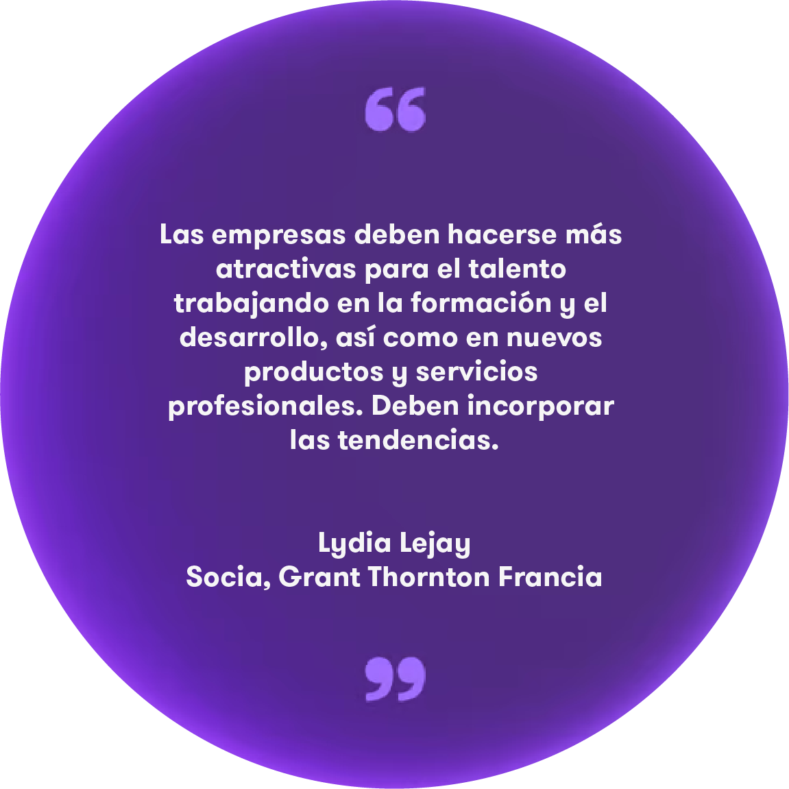 “Las empresas deben evaluar qué tipo de experiencia se necesita. Debemos mantener a las personas en su lugar y seleccionarlas por las habilidades de las que podamos beneficiarnos. Cuando se produzca el crecimiento, estas personas serán indispensables. Las empresas deben hacerse más atractivas para el talento trabajando en la formación y el desarrollo, así como en nuevos productos y servicios profesionales. Deben incorporar las tendencias”. -