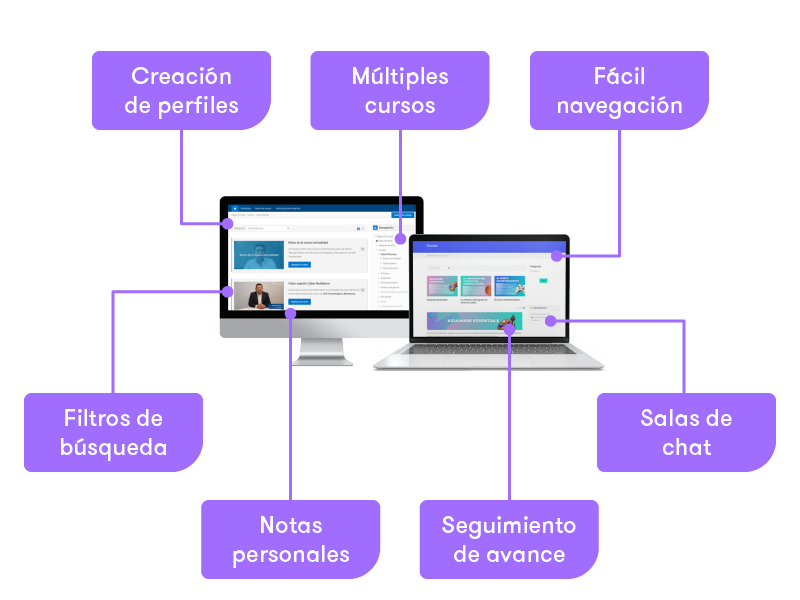 ✓ Flexibilidad: el colaborador puede realizar los cursos en el momento que desee y utilizando el soporte que le resulte más cómodo (computadora, Tablet, celular). Además, nuestras soluciones se adaptan a los métodos de estudio y necesidades de cada uno.